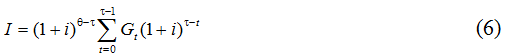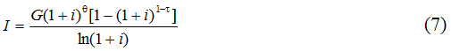 Формулы (5) и (6) воспроизводят ситуацию, когда цена образования выплачивается человеком за счет его собственных средств. Грубо говоря, эти средства он достает из кармана и отдает за свое обучение, вместо того, чтобы положить их на депозитный счет в банке и до конца жизни получать с них проценты. Безусловно, такая альтернатива увеличивает итоговую цену образования, что и учитывается формулами (5) и (6).