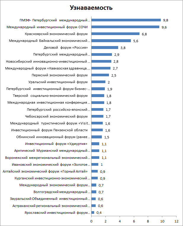 Рис.1. Узнаваемость региональных форумов (баллы).