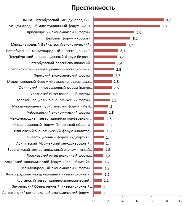 Рис.2. Престижность региональных форумов (баллы).
