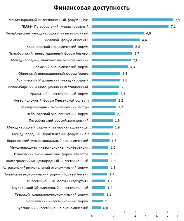 Рис.4. Финансовая доступность региональных форумов (баллы).