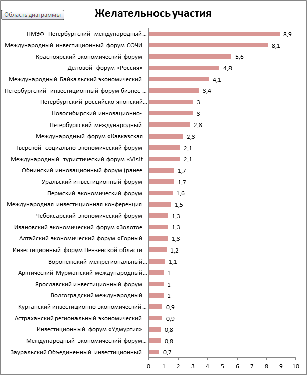 Получение искомого показателя (7) позволяет произвести окончательное ранжирование региональных форумов по признаку их привлекательности.