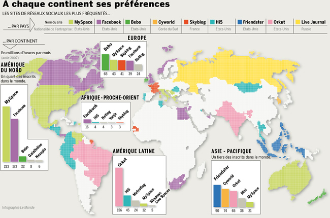 Для уяснения причины столь высокой популярности социальных сетей целесообразно воспользоваться результатами визуализации их практического использования. Согласно обзору рынка социальных сетей в России, странах СНГ и Восточной Европы в 2009 году, можно понять, как будет развиваться этот рынок далее: по каким моделям пойдёт проникновение и какие методы следует использовать для дальнейшего продвижения социальных сетей в той или иной стране.