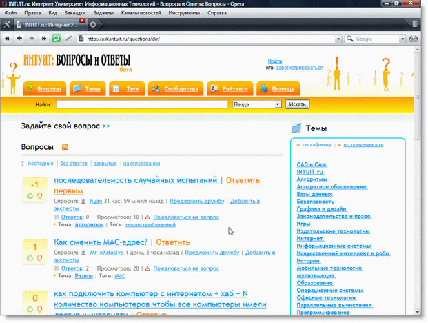 Рис.16. ИНТУИТ: вопросы и ответы.