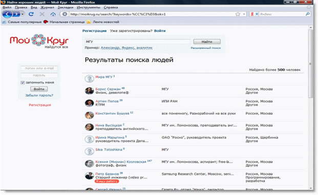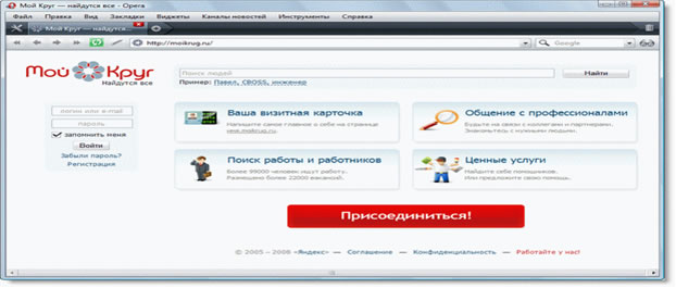 Рис.6. Социальная сеть Мой Круг (http://moikrug.ru/).