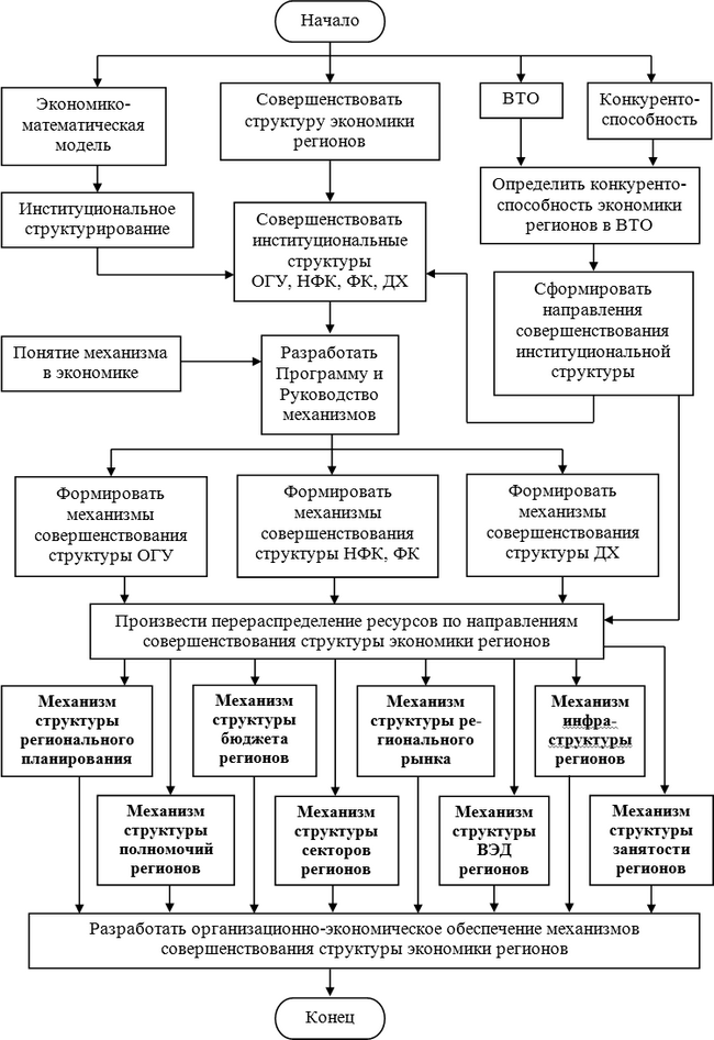 Рис.1. Алгоритм процесса разработки механизмов совершенствования структуры экономики регионов.