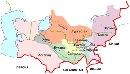 Рис. 1. Карта Туркестана XIX и начала XX вв.
