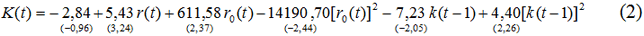 В-третьих, на формирование обменного курса «евро/доллар» ЕЦБ помимо внутренней и внешней процентных ставок оказывает влияние курсовая политика ФРС США. Так, в зависимость (2) в качестве объясняющего фактора входит обменный курс «евро/доллар» ФРС с запаздыванием в 1 месяц. Таким образом, и здесь мы получили принципиальный вывод о зависимости национальной политики установления курса от действий «чужих» национальных регулирующих органов. Данный момент позволяет утверждать, что институциональный фактор не может быть выброшен из схемы формирования валютного курса. Данное методическое нововведение позволяет дополнить и уточнить традиционную теорию капитальных активов.