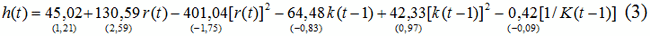 Теперь перейдем к анализу курса «рубль/евро» ЦБР. Данные табл.2 позволили получить следующую эконометрическую зависимость: