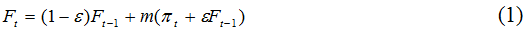 где F - объем основного капитала на конец периода (года); ε - коэффициент ежегодного выбытия основных фондов (предполагается равным норме амортизации); π - чистая прибыль предприятия (за вычетом всех налогов); m - средняя склонность фирмы к инвестированию своих финансов в основной капитал (0<m<1); t - время (год).