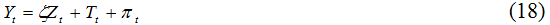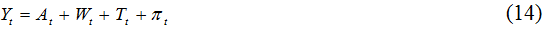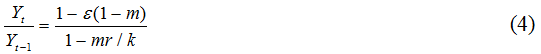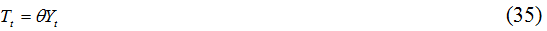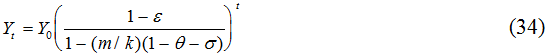 Введем следующие обозначения: σ = W / Y- доля заработной платы в добавленной стоимости; θ = T / Y - доля налоговых отчислений в добавленной стоимости. Разделив (14) на Yt , учитывая, что At = εKt-1, получим соотношение: