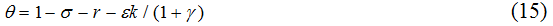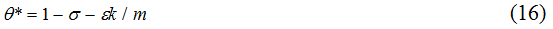 Жесткая функциональная связь между показателями θ и r позволяет строго определить максимальный (или предельно допустимый) уровень совокупного налогового бремени θ*, который имеет место при минимальном уровне нормы прибыли r*. Подставив формулу (6) в соотношение (15) и учитывая, что в этом случае γ=0, получим в явном виде формулу для предельного налогового бремени: