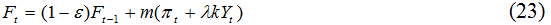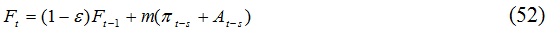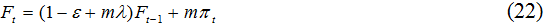 Во-вторых, в модели (1) предполагалось, что амортизация начисляется с основных фондов, прослуживших по крайней мере один год. На практике амортизация начисляется также и на основные средства, введенные в действие посреди текущего года. Тогда At = λFt и уравнение (1) можно переписать следующим образом: