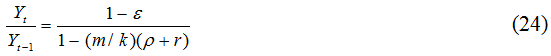 В конкретных исследованиях в зависимости от специфики моделируемого процесса может использоваться любое из трех уравнений: (1), (22) или (23). Мы будем опираться на (23) как на наиболее адекватно отражающее фактический процесс накопления основного капитала.