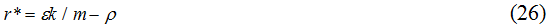 Если γ - темп прироста выпуска продукции фирмы, то есть γ = Yt / Yt-1 - 1, то из соотношения (4) вытекает формула для предельного (минимального) уровня нормы прибыли r*, при котором возможно поддержание простого воспроизводства (γ=0):
