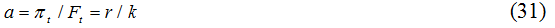 Таким образом, если формулы (31) и (32) служат для дополнительной оценки эффективности технологической структуры предприятия, то формула (33) значительно ближе к классическим показателям нормы прибыли, будучи индикатором выгодности дальнейших вложений в производство. Именно показатель (33) можно использовать для сравнения с банковским процентом, процентом по государственным ценным бумагам и прочими финансовыми показателями, характеризующими относительную выгодность финансовых вложений экономических агентов. Кстати говоря, из (33) следует, что наиболее перспективными являются вложения в динамичные, быстро развивающиеся экономические объекты, где γ>>0. К числу таковых относятся, как правило, молодые фирмы с незначительным начальным объемом основного капитала.