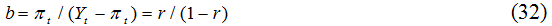 Если ввести в рассмотрение показатель нормы прибыли r как доли чистой прибыли в созданной добавленной стоимости