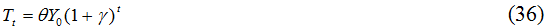 Здесь проявляются практически те же закономерности, которые были рассмотрены в работе [3] относительно налога на имущество. В частности, из (37) следует, что традиционная точка Лаффера применительно к совокупному налоговому бремени отсутствует. Точка перегиба появляется только при рассмотрении эффекта “последействия”. Иными словами, увеличение совокупного налогового бремени приводит к уменьшению налоговых поступлений только через несколько лет; в рамках одного временного периода всегда Tt / θ < 0.