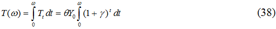 Чтобы оценить долгосрочный эффект от снижения налоговых ставок следует рассматривать кумулятивный показатель фискальных сборов T(ω), то есть налогов, собранных за период времени в ω лет: