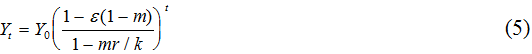 Для простоты анализа показатели r, k, m и ε будем использовать в качестве параметров, полагая их величины постоянными во времени, так как для наших целей вполне достаточно рассмотрения стационарных траекторий роста. Тогда динамика выпуска описывается следующей степенной функцией:
