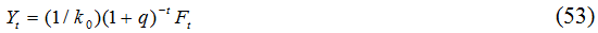 3. Внесение в анализ нестационарности. Это достигается благодаря снятию посылки о постоянстве модельных параметров. В частности, можно предположить, что в экономике имеет место экзогенный технический прогресс и капиталоемкость k изменяется во времени с неким темпом q. Тогда kt = k0(1 + q)t, а уравнение (2) принимает вид: