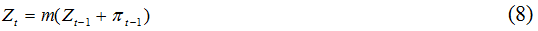 где Z - объем всех производственных издержек фирмы, исключая налоговые выплаты; m - параметр, характеризующий склонность руководства фирмы к осуществлению вложений в производство (функционально он аналогичен средней склонности к инвестированию в (1); 0<m<1).