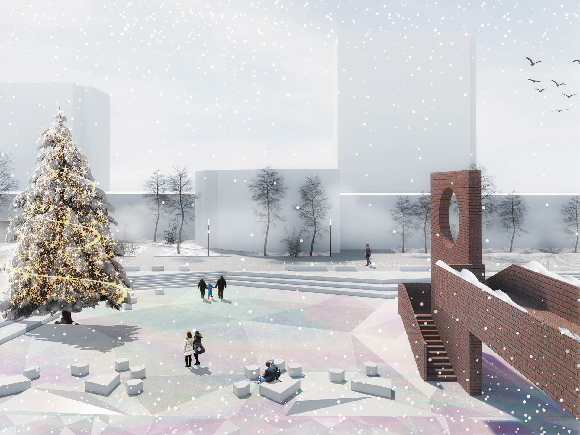 Т.О.: Для примера. На этой территории была расположена старая детская площадка советского времени, которая очень полюбилась жителям. Они ее очень любят, привыкли к ней и не хотели менять ее образ, но функцию надо было расширить. При этом надо понимать, что это, наверное, 1/30 всего бульвара. Мы придумали такое визуальное решение, которое подчеркивает образ той старой кирпичной детской площадки с внедрением нового функционала, современных объектов для детских игр. Нам удалось сохранить баланс существующего, близкого жителям, дизайн-кода территории и внедрить нужные современные функции. Но чтобы это реализовать нам пришлось поработать над картинкой в головах жителей “все снести и построить заново” таким образом, чтобы выявить их подлинный запрос на функциональное и эмоциональное обновление площадки.